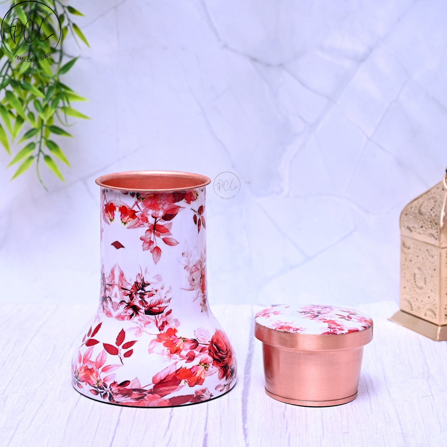 High Quality Copper Bedroom Jar / Water Pot with 2 Pcs Glass In Gift Box Pack | Capacity 1000 ML