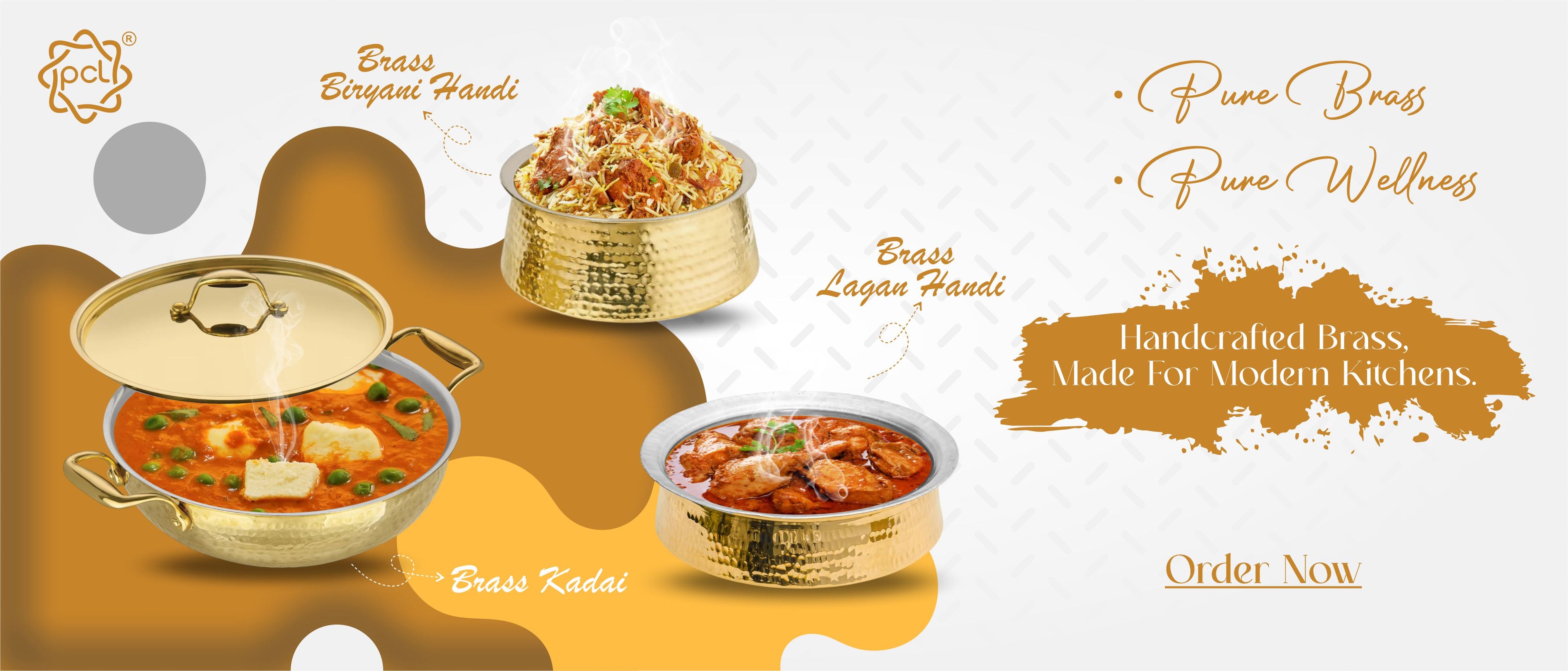 Punjabi Handi Set With Tin Coating Inside | Pure Brass Cooking Ware -2 No.