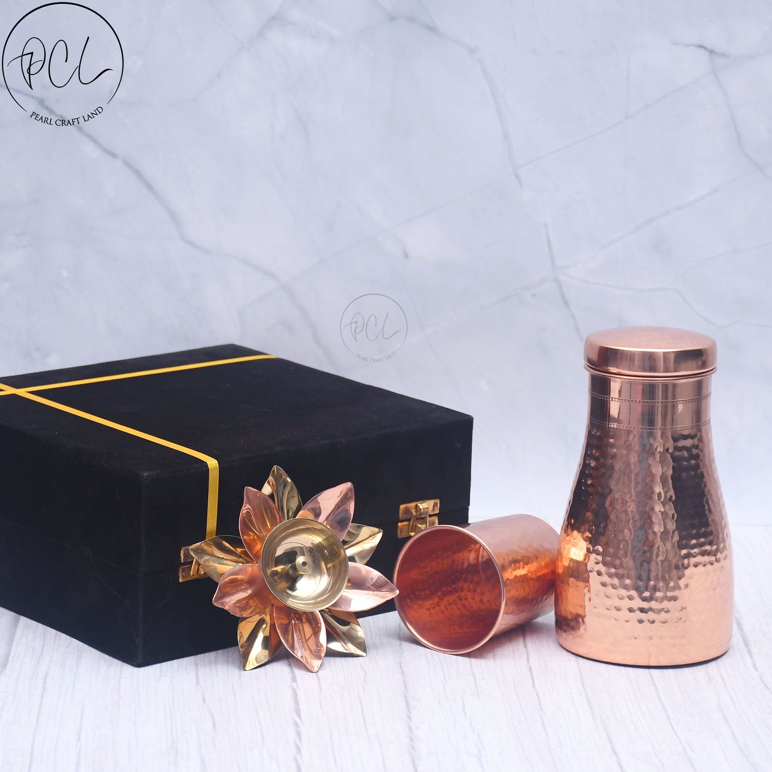 Pure Copper Bedside Bedroom Jar With 2 Pcs Glass Set In Gift Box Capacity 1000 ML