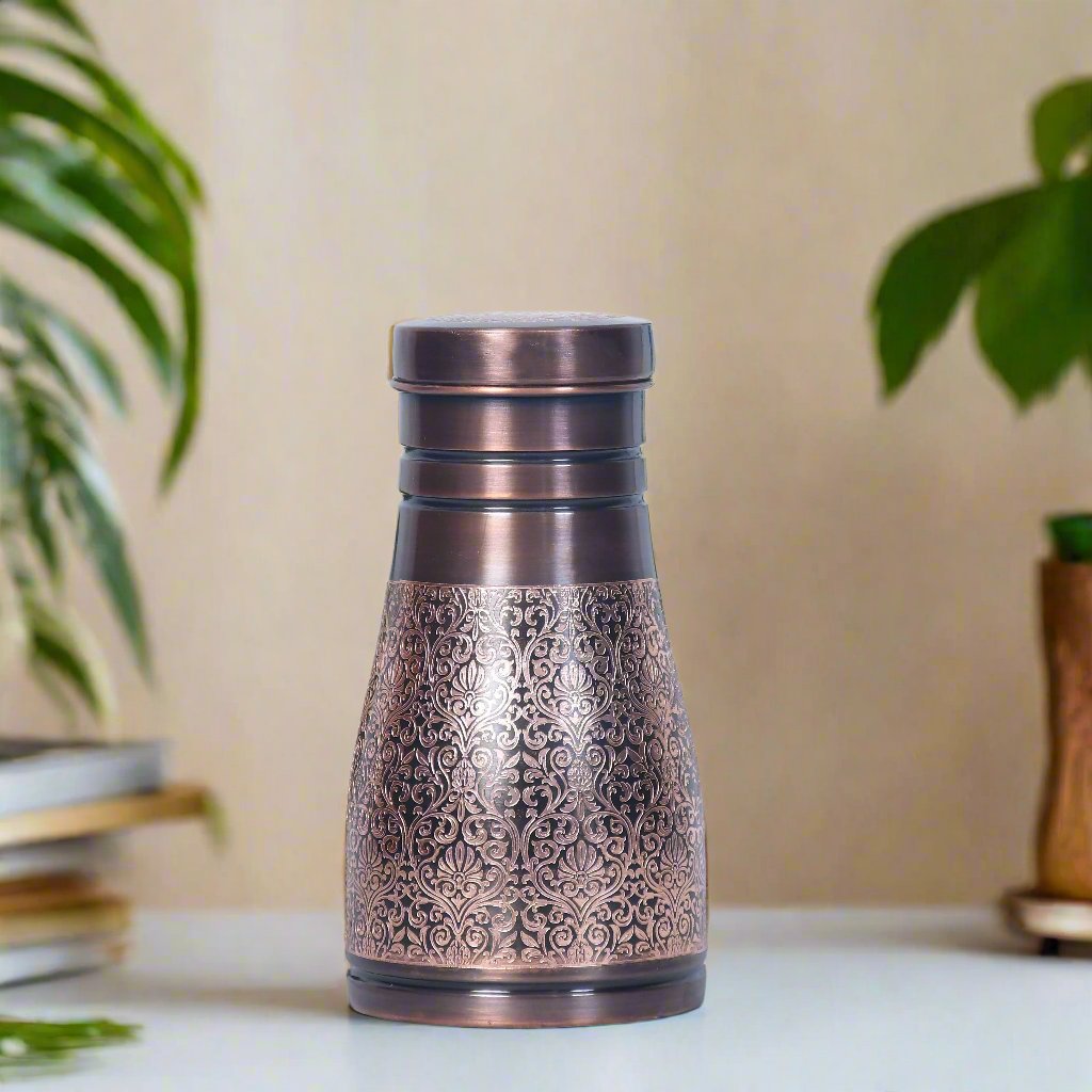 Pure Copper Water Bottle Milton Antique Engraved Design Capacity 1000ML