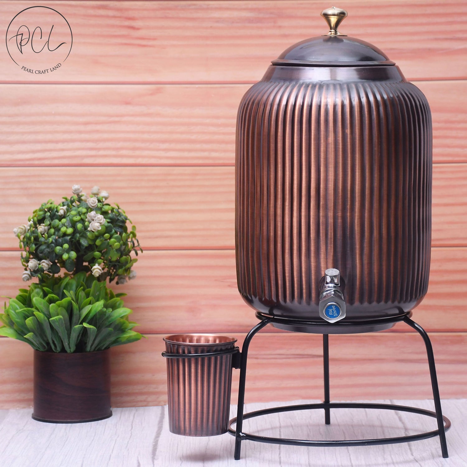Pure Copper Water Dispenser Barrel Ribbon Hammered Designed Capacity 5000 ML.