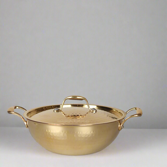 Exclusive Brass Kadhai Set With Tin Coating Inside | Cooking Ware kadhai - 1.5 Ltr