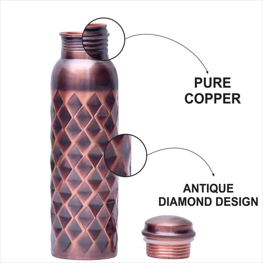 Pure Copper Water Bottle Antique Diamond Design Capacity 1000ML