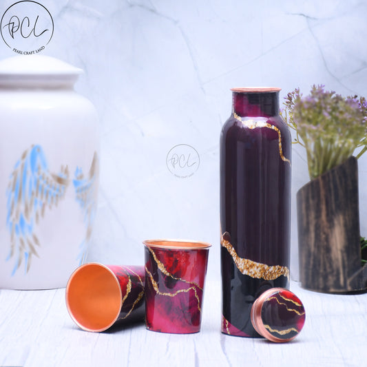 Exclusive Black Designed Pure Copper Bottle with Golden Stripes with 2 Glass/ Tumbler 1440 ML