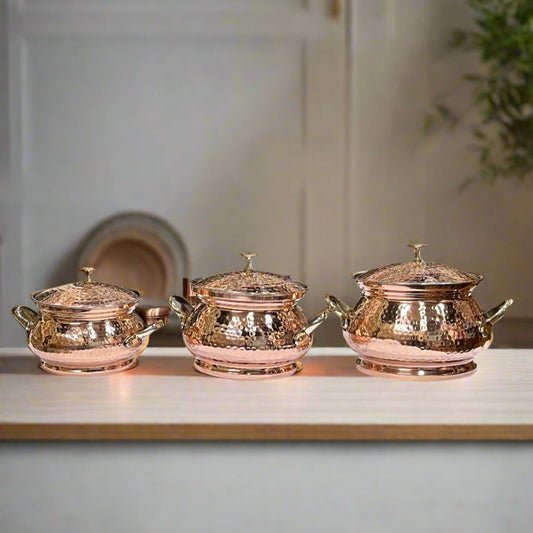 3 Pcs Copper Serving Handi Set With Lid | Copper Serving Ware Items