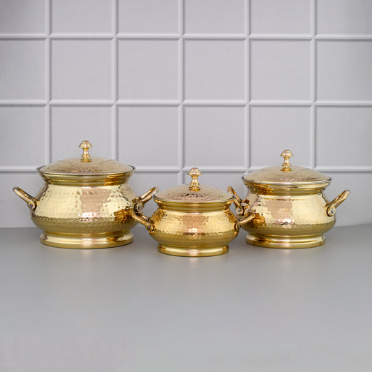 Beautiful 3 Pcs Brass Serving Handi Set With Lid