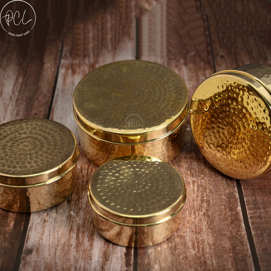Brass Kulfi Set of 4 Pcs - Brass Dabba Shiny Polished With Hammered Design