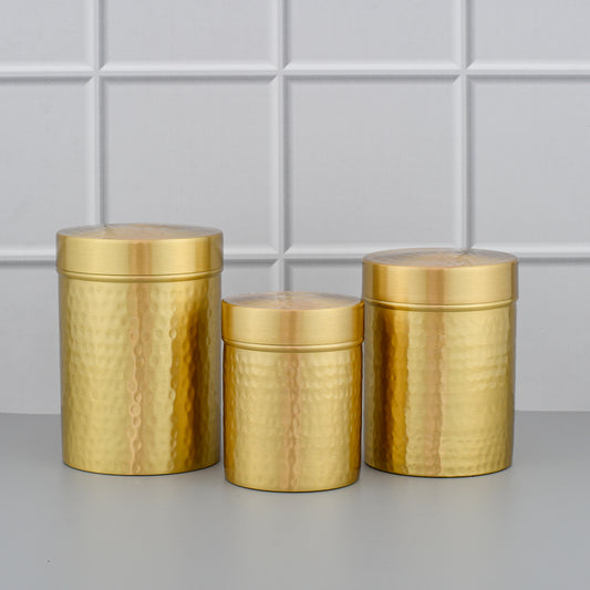 Pure Brass 3 Pcs Tea, Coffee and Sugar Canister Set - Matte Hammered