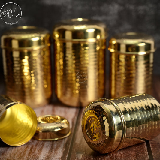High Quality Pure Brass Kitchen Storage Canister Set of 5 Pcs - Shiny Polished With Hammered Design