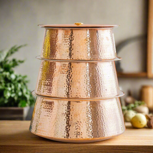 High Quality Pure Copper Biryani Handi Set of 3 Pcs With Lid