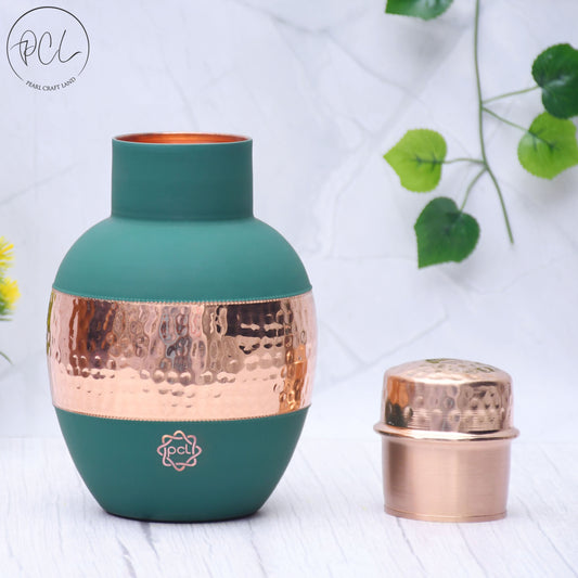 Pure Copper Silk Green Bedside Jar with Inbuilt Glass Capacity 1000ML.