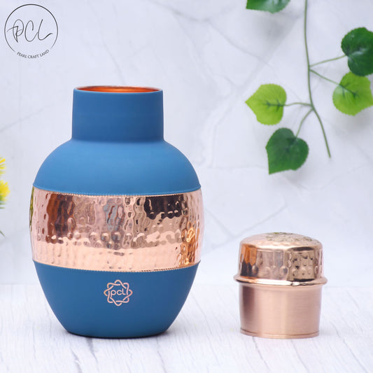 Pure Copper Silk Blue Bedside Jar with Inbuilt Glass Capacity 1000ML.