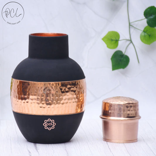 Pure Copper Silk Black Matka Pot with Inbuilt Glass Capacity 1200ML