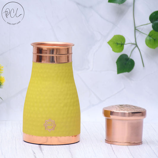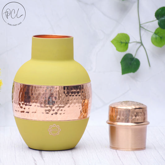 Pure Copper Silk Yellow Bedside Jar with Inbuilt Glass Capacity 1000ML