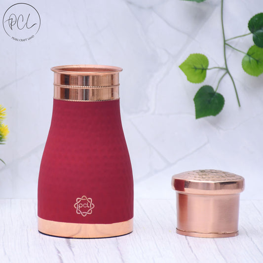 Pure Copper Silk Red Cherry Bedside Jar with Inbuilt Glass Capacity 1000ML