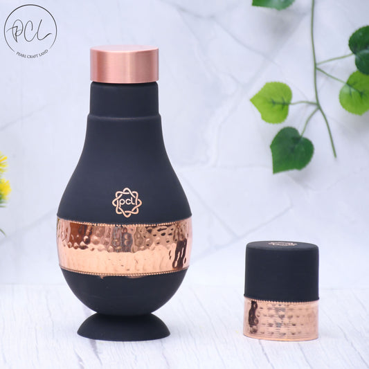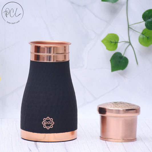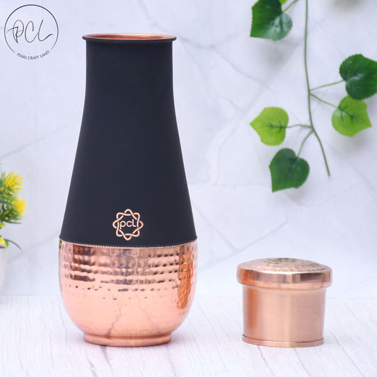 Pure Copper Silk Black Modern Surahi with Inbuilt Glass Capacity 1000 ML