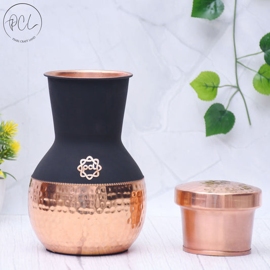 Pure Copper Silk Black Bedside Jar with Inbuilt Glass Capacity 1000ML