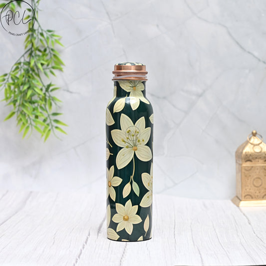 Pure Copper White Lily Water Bottle with Leak Proof Capacity 1000 ML.