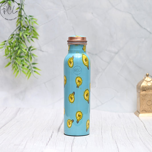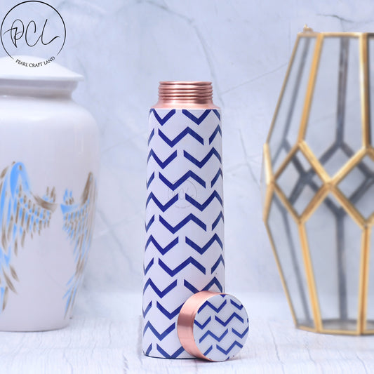 Pure Copper Blue & Ivory Design Printed Water Bottle with Leak Proof Capacity 1000 ML.