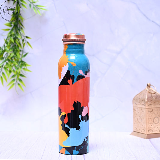 Pure Copper Multicoloured Abstract Printed Water Bottle with Leak Proof Capacity 1000 ML.