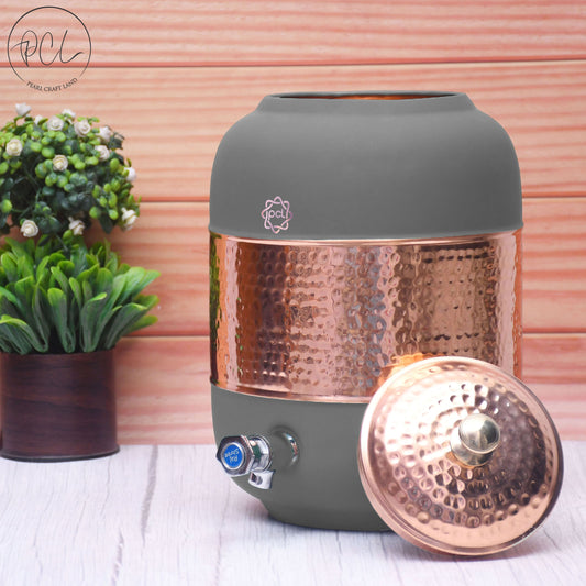 Pure Copper Silk Grey Half Hammered Water Dispenser (Matka) Capacity 5000ML