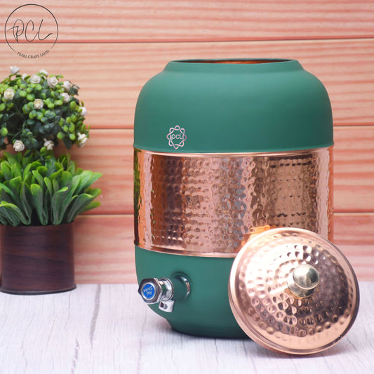 Pure Copper Silk Green Half Hammered Water Dispenser (Matka) Capacity 8000ML