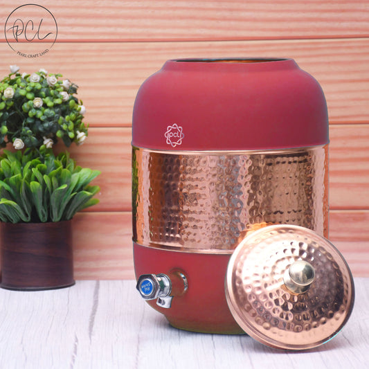 Pure Copper Silk Red Cherry Half Hammered Water Dispenser (Matka) Capacity 8000ML