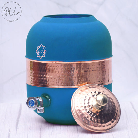 Pure Copper Silk Blue Half Hammered Water Dispenser (Matka) Capacity 8000ML