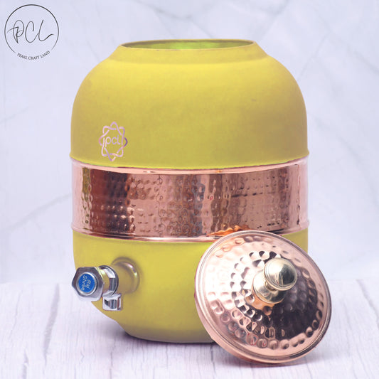 Pure Copper Silk Yellow Half Hammered Water Dispenser (Matka) Capacity 8000ML