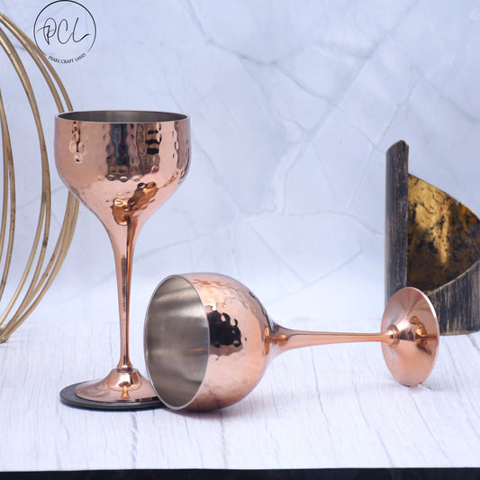Beautifully Designed Pakiza Copper Finished Goblet Glasses | Set of 2