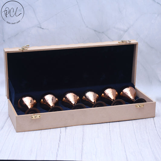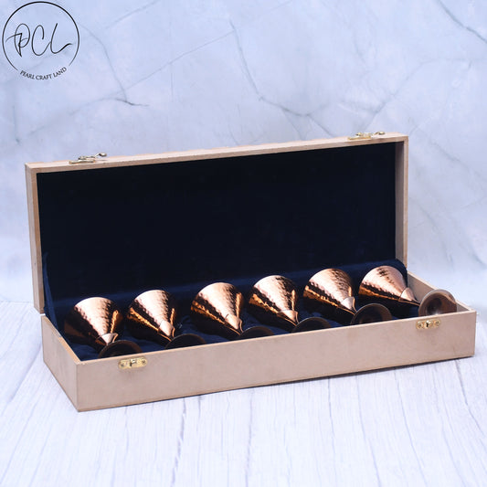 Beautifully Designed Copper Finished Tequila Glass Set of 6 With Wooden Box Barware