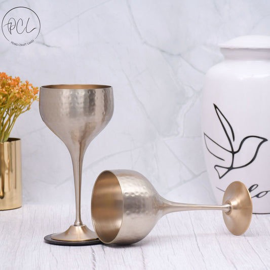 Beautifully Designed Pakiza Brass Matt Finished Goblet Glasses | Set of 2