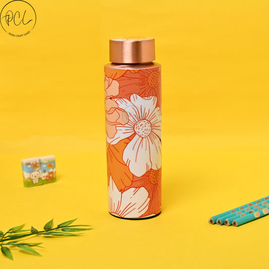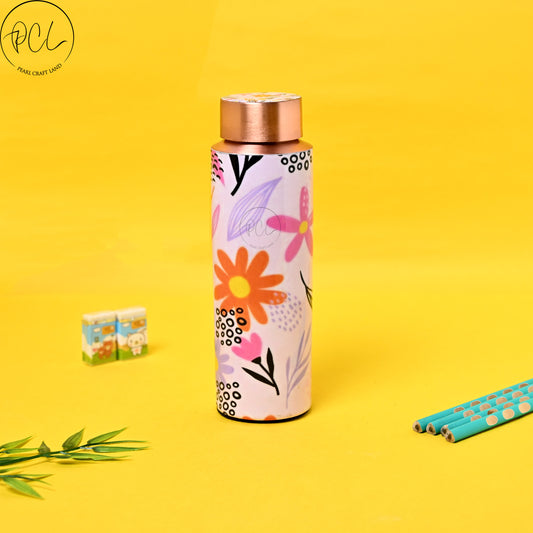 PCL Copper Bottle Beautiful Flowers Printed | 400 ML