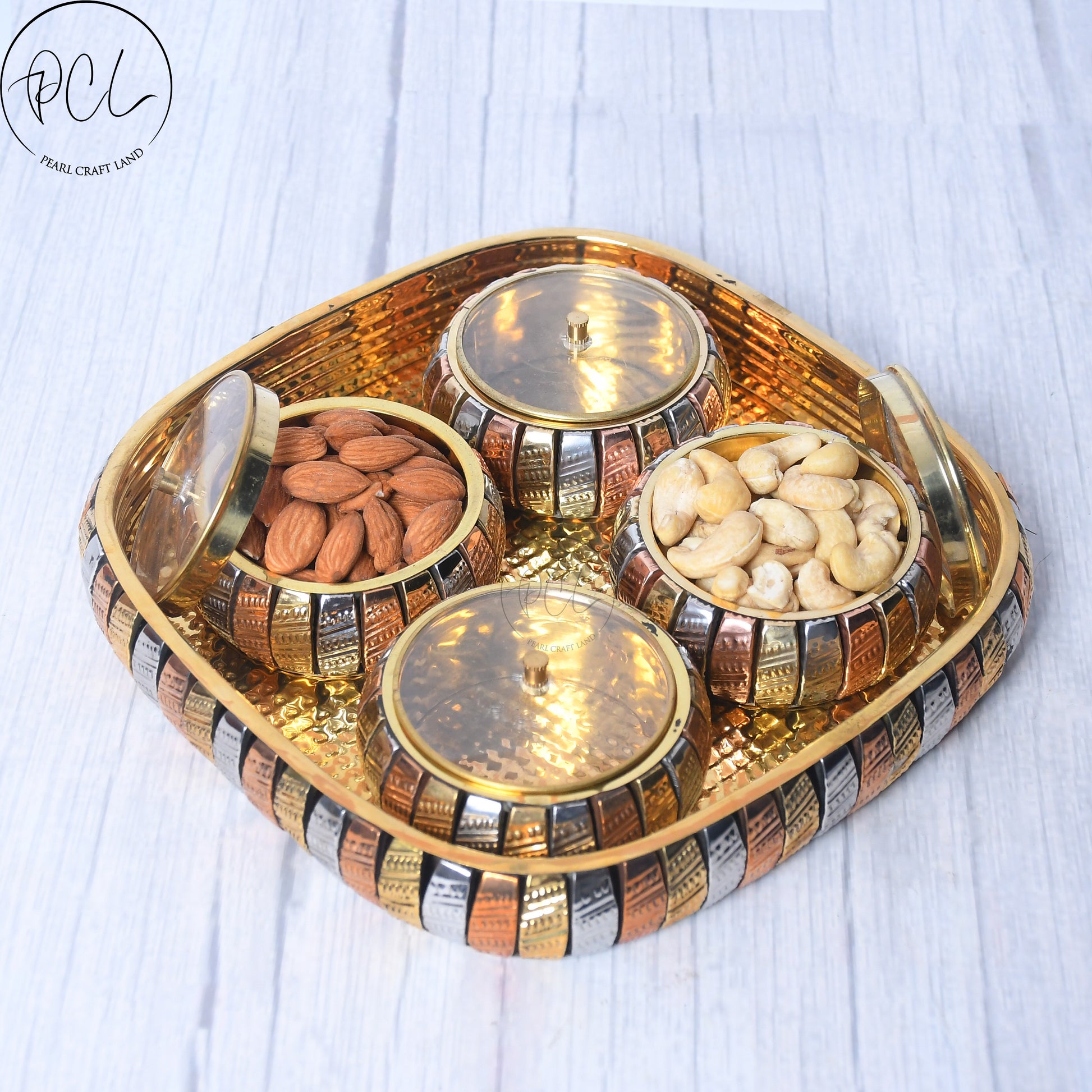 Multipurpose Brass Supari Set Decorative Box with 4 Container Set of 5